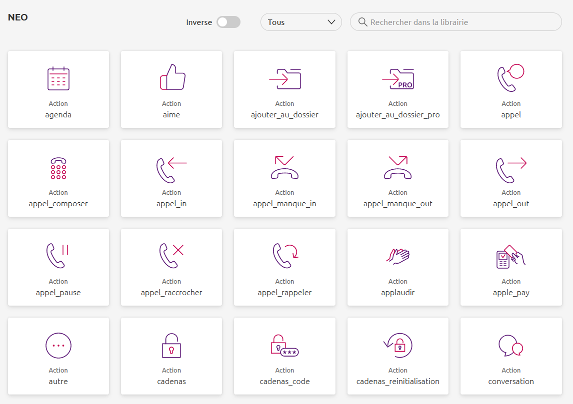 En plus des pictogrammes disponibles avec Neo, nous en avons ajouté des nouveaux.